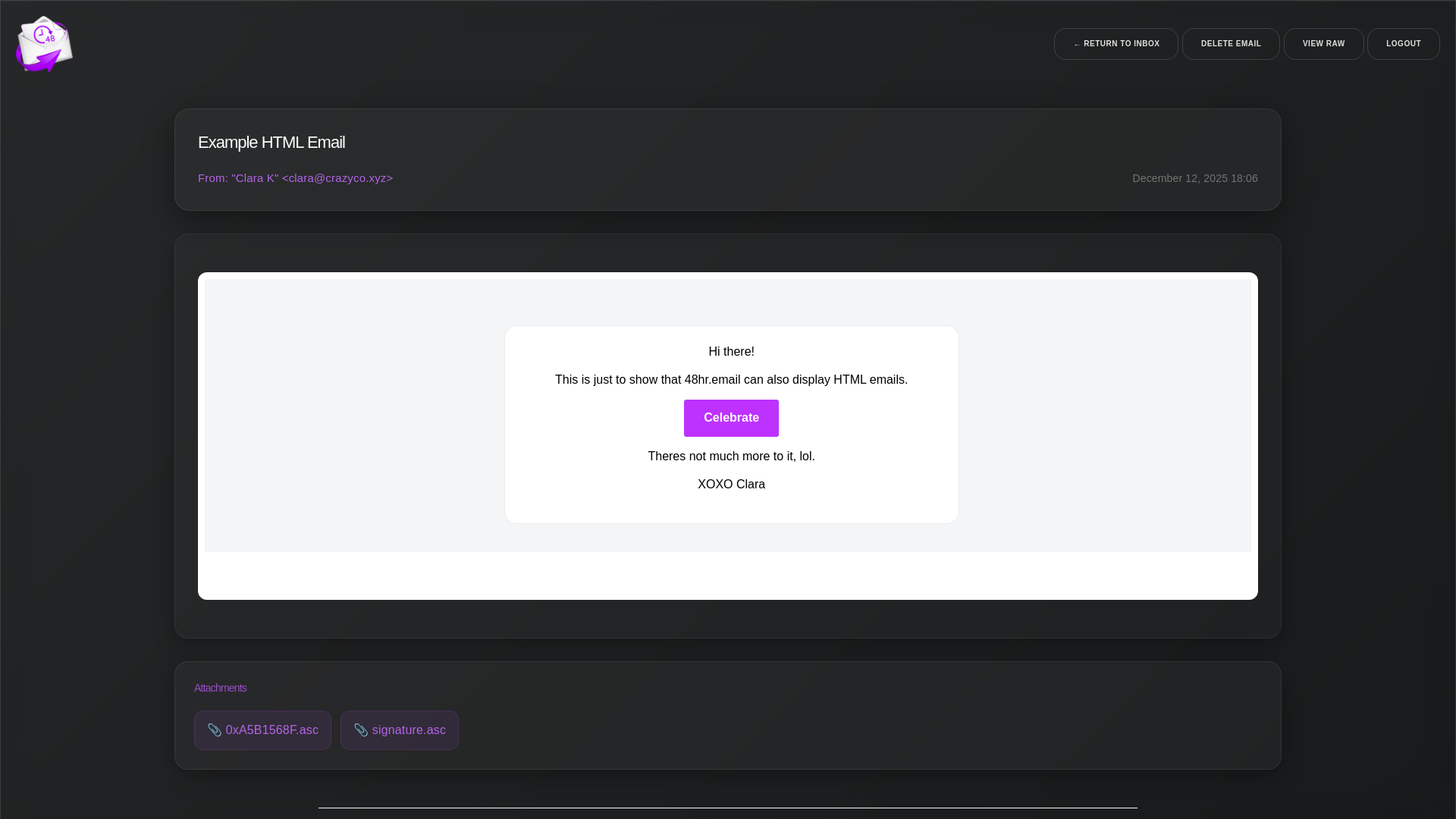 • Read emails, with support for HTML, CSS & JS just like you are used to from regular email providers