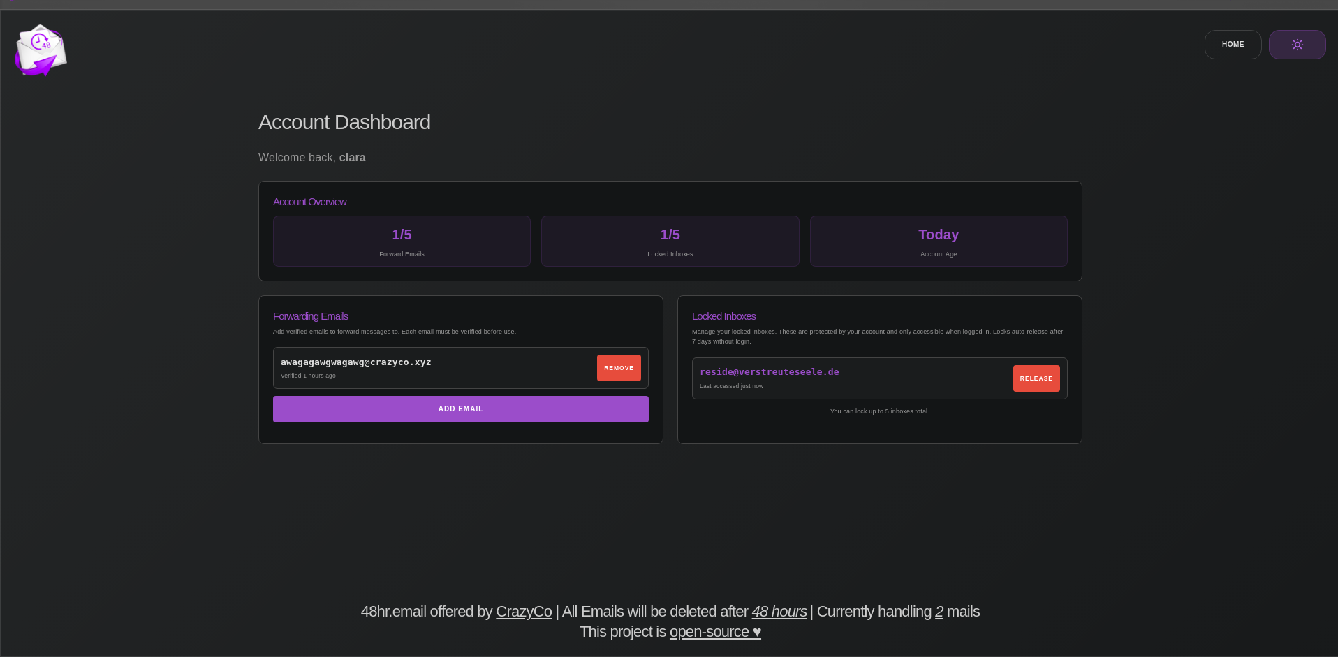 48hr.email is my very own tempmail service. You can create emails on the fly with one click, not needing to worry about corporations do with your email. They can sell that one all they want!