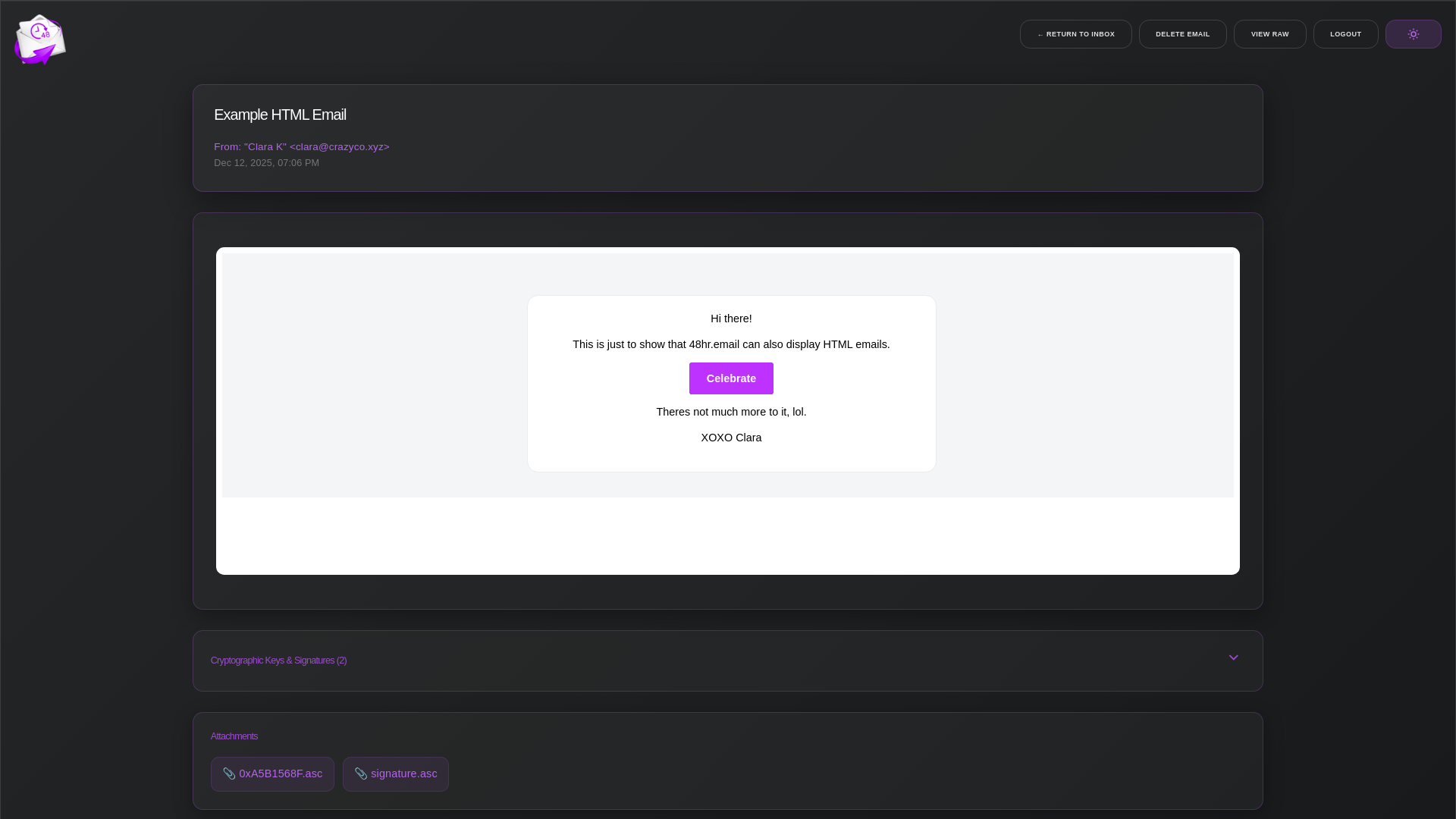 - Read emails, with support for HTML, CSS & JS just like you are used to from regular email providers